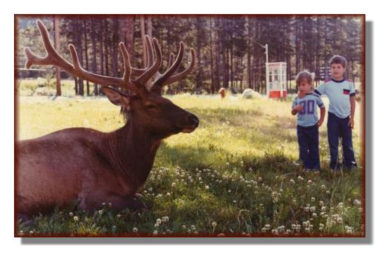 Andy (left) and Rod Jr. cautiously approaching an elk while on vacation in B.C. (1978)