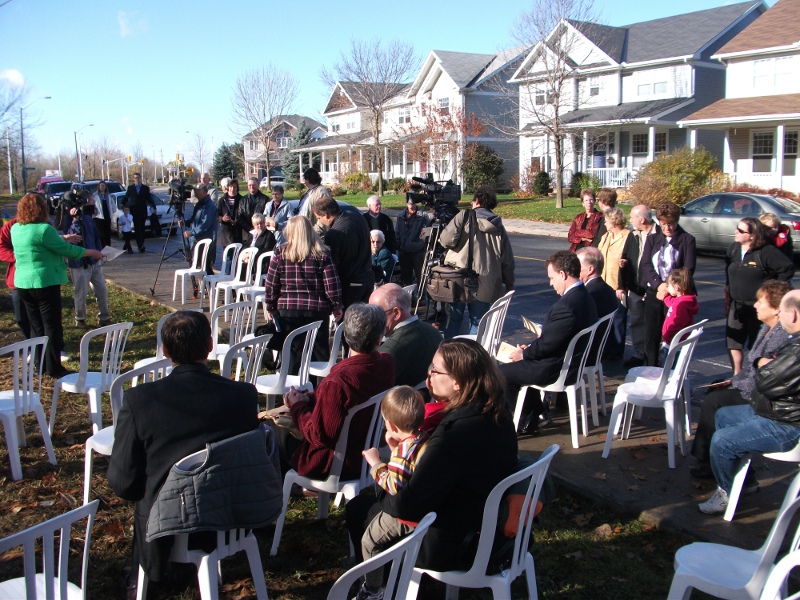 City of Ottawa Councilor Jan Harder held a ceremony officially renaming Edgeware Park to 'Andy Moffitt Trail' in Ottawa today. Friends, family and honored guests, including M.P. Gord Brown (Leeds-Grenville), Senator Bob Runciman, radio personality/journalist/author Michael Harris and hockey legend Brian Kilrea attended the hour and a half event.