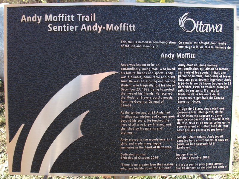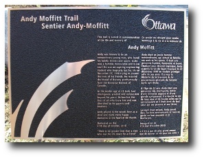 The City of Ottawa council will be honoring Andy by renaming Edgeware Park to 'Andy Moffitt Trail'. A ceremony will be held at the park on Wednesday, October 27th at 10:30 AM. The park is located in the suburban region known as 'Barrhaven', where Andy grew up.