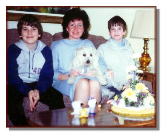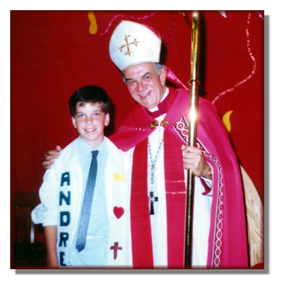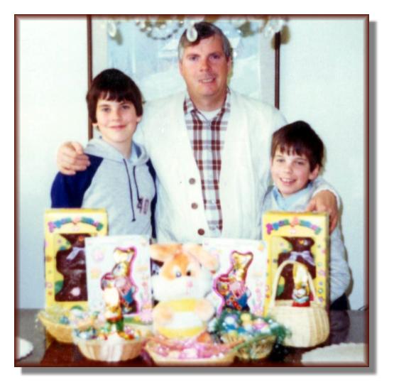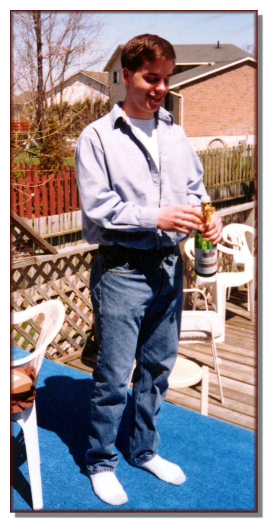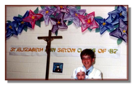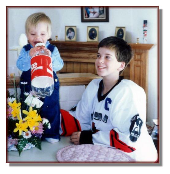 Andy goofing around with Mike after a hockey game Andy holding his new little brother Mike Andy celebrating on the backyard deck Andy's confirmation Easter picture with Dad Easter picture with Mom Andy's Grade 6 graduation